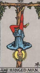 13. The Hanged Man (XII) – Người Bị Treo Ngược ~ Thử thách lòng kiên nhẫn, buông bỏ kiểm soát, nhìn sự việc từ góc khác.