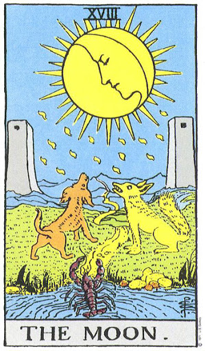 19. The Moon (XVIII) – Mặt Trăng Đối mặt với ảo ảnh, nỗi sợ và phần tối trong tâm trí.