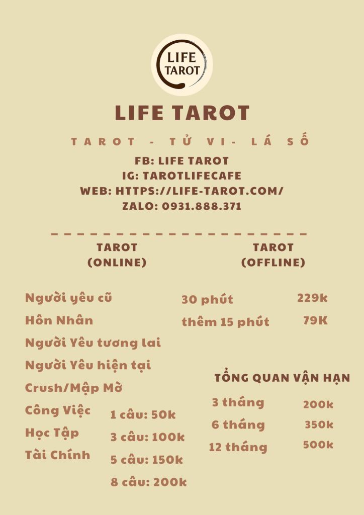 Nhằm đáp ứng nhu cầu của quý khách hàng về dịch vụ Tarot, Life Tarot phục vụ dưới cả hai hình thức trực tuyến và trực tiếp tại quầy. Và với mỗi hình thức, Life Tarot sẽ có những mức giá phù hợp để khách hàng có thể trải nghiệm dịch vụ Tarot một cách hiệu quả.